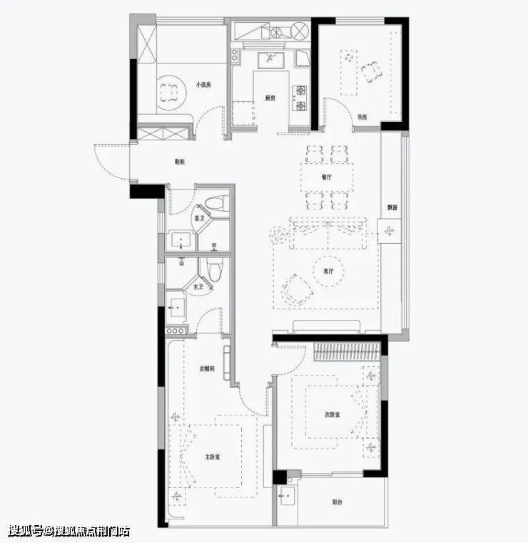 (建面约)97㎡的全明边套三房,是一个很少出现在边套的面积段,南向双联阳台宽约6.4米,堪称刚需户型中的超尺呈现了。