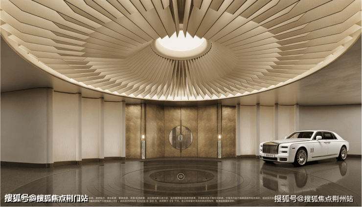 双车马厅设计,取非遗骨扇形制,兼具隐贵气质与礼仪功能,营造静谧、尊崇的归家体验