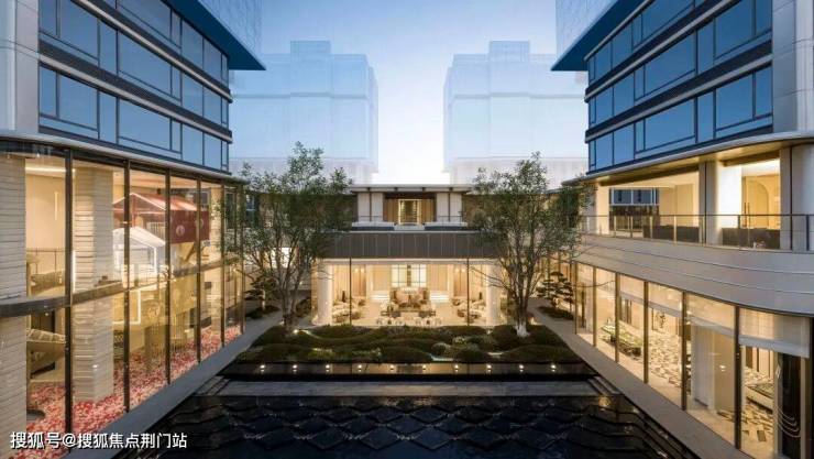 1200平米下沉式庭院,叠水成瀑,打破常规“坑洞”设计,打造上下双层平行空间,营造独特的滨水度假体验,令人一见倾心。