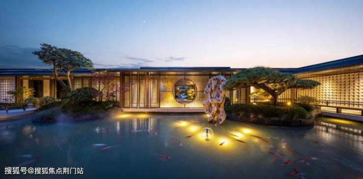 穿过大堂,是“鸣荷庭”水院,一池碧水之中,养了约200条锦鲤,绚丽得如诗如画。池边是来自太湖畔的原生太湖石,以及一棵树龄约300年、价值近百万的日本黑松。