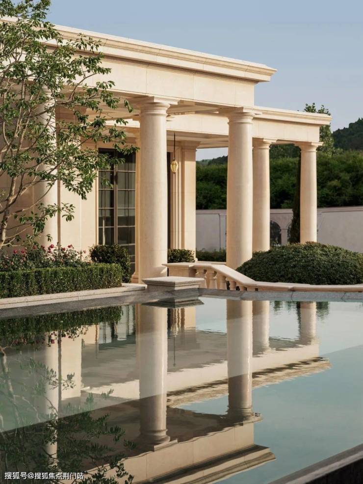 ▲柱廊、池水、群山的日与夜,绿城·溪径恒庐,杭州,实景图