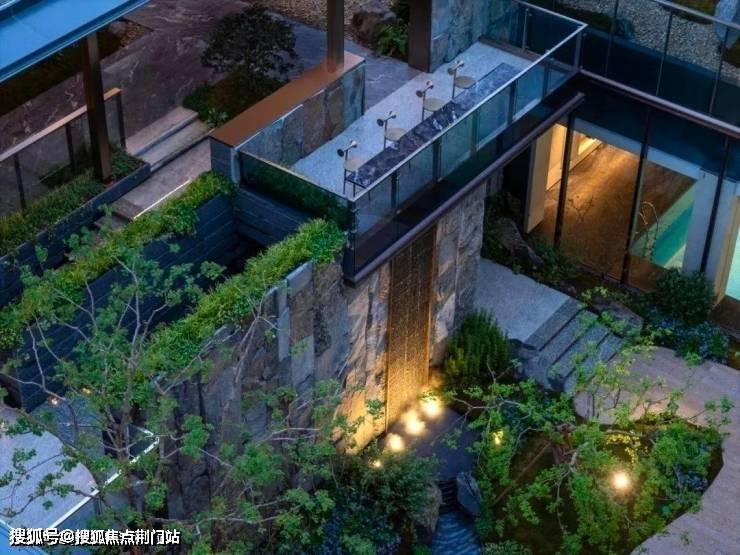 这个庭院美到霸屏,里面点缀着特选黑松、羽毛枫、4棵乌桕等,以及采用约40吨自然石皮面打造的垂直立面墙,整个庭院犹如立体山水画卷,每一个角度都有不一样的风景。