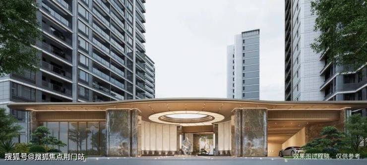 第一眼心动来自主入口。无风雨落客大门宽约44米,挑高6米,结合奢石和金色线条打造,气势恢宏。从主入口开始,九重归家礼序,给业主带来满满的尊贵感。