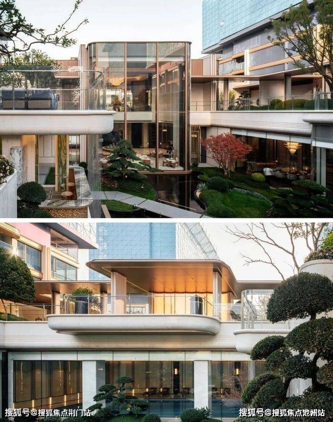 由绿城六合设计院(GLA)顶尖团队执笔的建筑,首次将“艺术流体屏”概念引入杭州豪宅立面,悉心雕琢“桂花纹穿孔铝板”造型,古铜色主调,搭配四面铝板与南北双玻璃幕墙,让建筑在阳光下呈现出动态的光影变化。