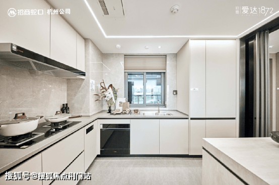 对刚需而言,有限的预算,爱达1872直接配了全套,自然不能错过。建筑外立面上,不同于传统的完全对称,而是以局部非对称的设计,让建筑看去更为灵动。外立面以灰白色调为主,使用了涂料、局部铝板、石材与玻璃的组合。在建筑顶部,招商增设了香槟色的飘板设计,刷新区域立面的美学高度,极具辨识度。