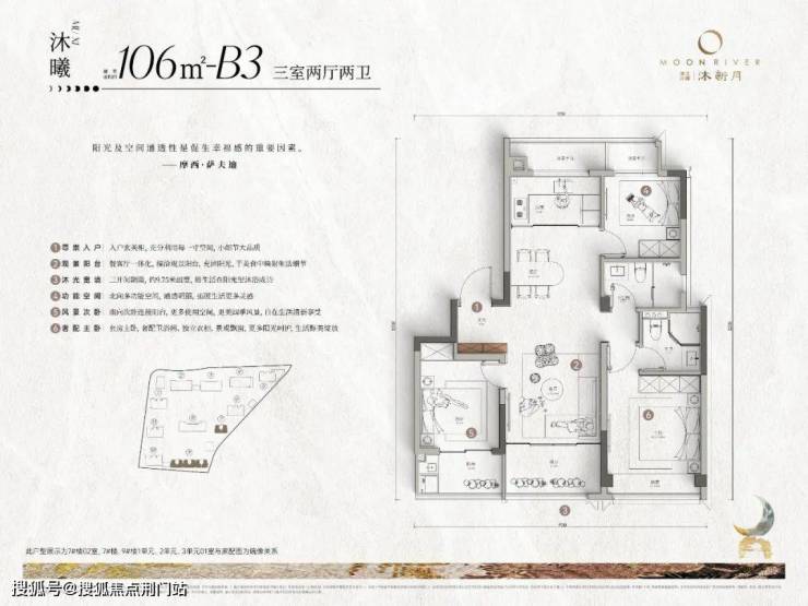 9#滨水王座建面约106㎡全能三房,无论是空间尺度感还是功能设计,都从居住的底层逻辑给出理想的完美答案,全方位满足各类场景所需。