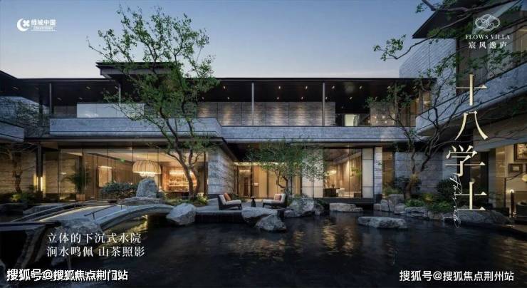 鼎筑约50米酒店式华盖门仪,进阶归家体验;引水入园,以溪涧、逸亭、瀑布、小桥约“150米中央景观水系松壑长风”;复刻《溪山清远图》。