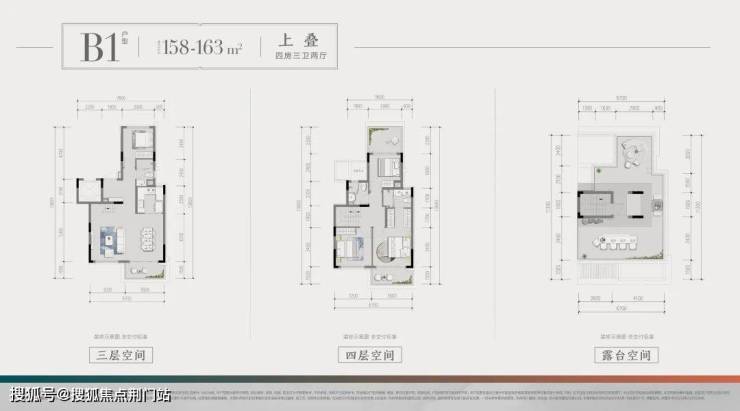 以建筑面积约160㎡的户型为例,四室两厅三卫的设计,面宽达到了惊人的约16.4m(双层),足以媲美市面上一些200方的大户型叠墅。 户型整体尺度感很强,尤其是主卧,空间豪华,甚至还规划有一个“X”空间,娱乐、办公、休憩随意切换......