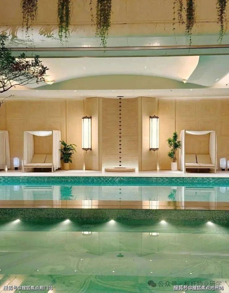 以《红楼梦》中“大观园”为灵感,蕙澜月华打造一座立体叠合的山水园林,通过山水意趣的象征表达与建筑即景的精巧融合,呈现“芥子须弥,小中见大”的东方美学意境。约320米的下沉式庭院,仿若山谷溪涧,营造出“瀑布挂崖间,飞空作碧玉”的壮丽景观;室内恒温泳池与室外嬉水池间,采用可开可合的设计,模糊内外界限,实现自然与建筑的和谐共生。有氧健身空间以“玻璃盒子”的挑空姿态,悬浮于下沉庭院之上,为运动者带来开阔视野。在这里,健身的先生、游泳的太太、嬉戏的孩子,既各享其乐,又共享视线中的陪伴,多维场景的高频互动,诠释了奢华的真谛——不仅是空间,更是情感的交融。