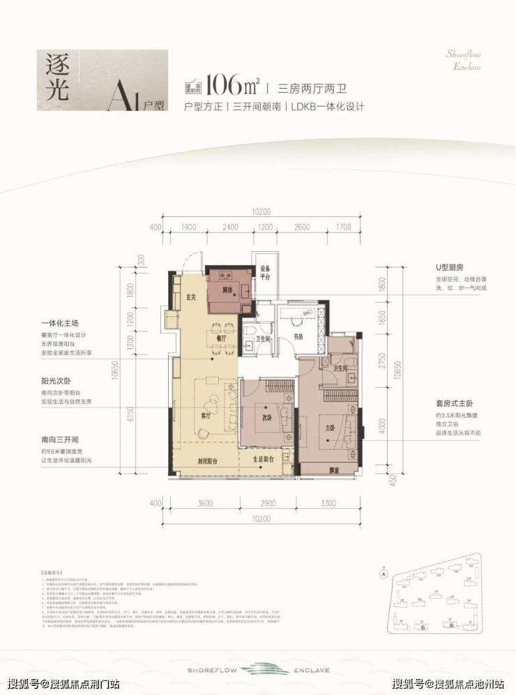 建面约106㎡A1三室两厅两卫户型: