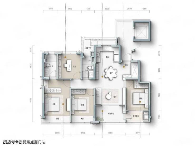 四开间朝南设计,主卧套房设计,宽景封闭式阳台。