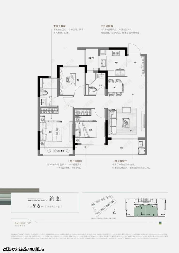 虹缤之都建面约96㎡软装样板房实景示意图