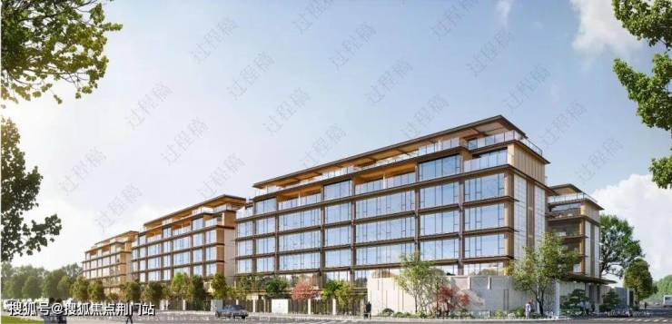 项目大门的“含石量”极高,还有水景和名贵树种搭配,立面的南面则是大面积玻璃幕墙为主,侧面主要用材应该是石材。