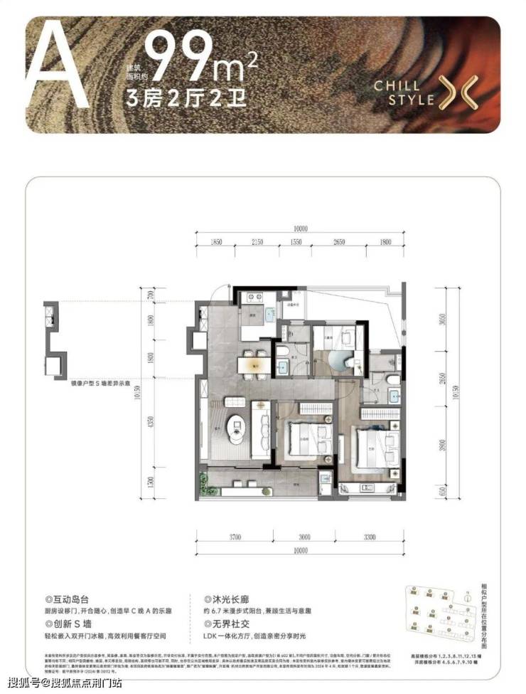 其户型开篇就是王炸,把起步面积压到了建面约99方,除了把整个板块的总价门槛都往下拉了一截,与市面上通常的建面约105方户型相比,更是实打实地为购房者至少省下约5个平方的面积,小计也有约10多万。