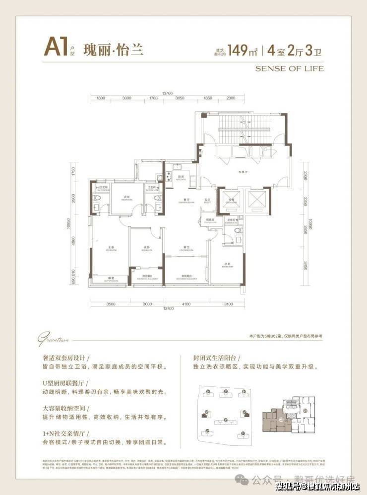 【A 瑰丽·怡兰 世纪城祗此建面约149方双套房】奢适双套房设计 | 独立储藏间 | 封闭式生活阳台 总价:680万起