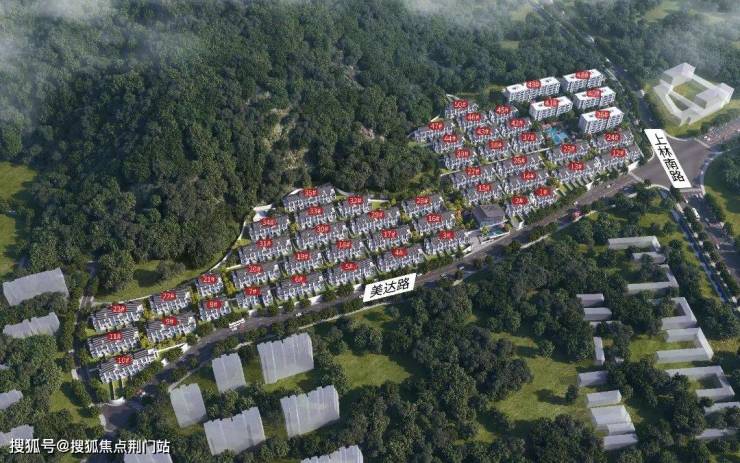 从空中俯视,整个小区院落错落有致,翩然伏于青山绿树间。