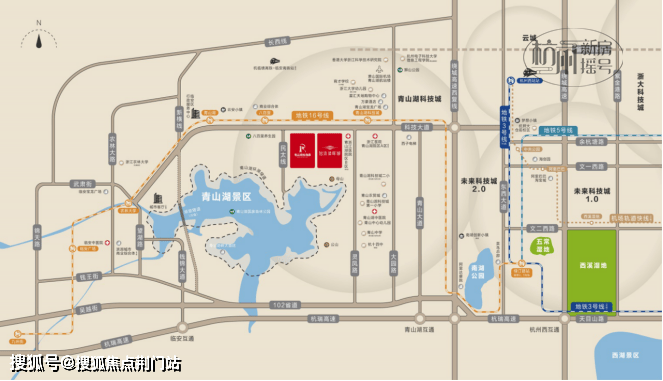 地铁16号线,6站抵达未来科技城,通过绿汀路站换乘5号/3号线,快速抵达杭州主城各处繁华;