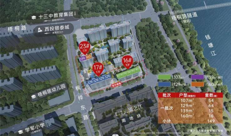 约500米就是钱塘江,家门口还有双名校,全盘规划低密洋房、小高层,都是改善大四房。