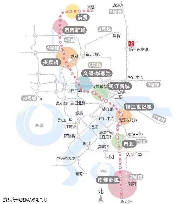 一个城北万象城(距武林广场直线约11公里),让杭行路站变成“大桥西”绝对中心; 一个花园城(距武林广场直线约14.5公里 ),正在将崇杭街站塑造为运河东岸新原点。