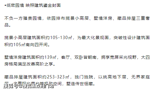 【户型面积】小高层建筑面积约105-130㎡,洋房建筑面积约139㎡,排屋建筑面积约253-323㎡