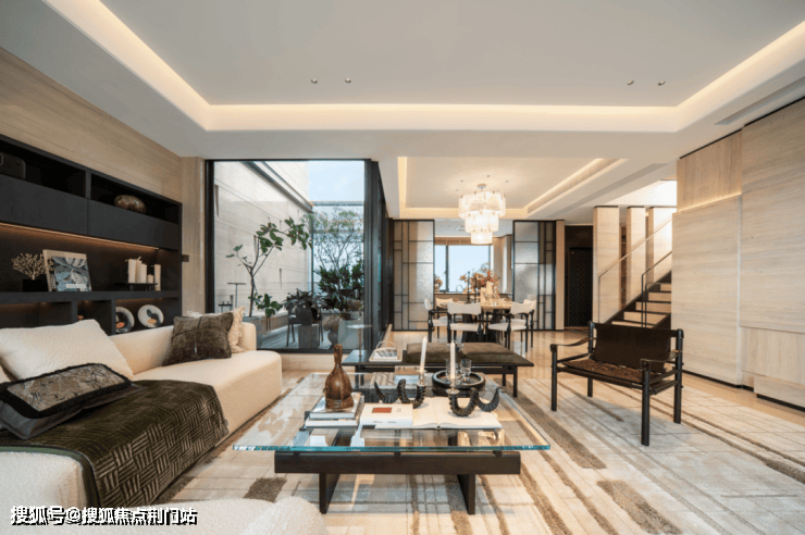杭州溪径恒庐以希腊安缦酒店的气质和空间氛围为设计灵感,充分借鉴其台地空间及立体游廊的设计手法,巧妙串联主入口、生活馆、地下会客厅、合院及叠墅等多重业态,打造近2万方超大规模全维体验的立体示范区。东南角的生活馆规划女王空间、棋牌室、儿童书房等社交场域,每层独享专属景观,更以灵动弧形阶梯有机衔接,凝练成本项目独一无二的「石语台地」。