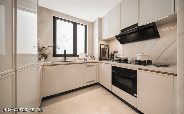 步入室内,赫然呈现的还有山茶花演绎的镂花工艺,和非遗编织的定制门把手。上至与千万级豪宅同款的艺术影木饰面,下至知名设计师手绘地板拼花,大到厨房豪华餐边柜,小至主卫定制复古水龙头,处处透着高定基因。