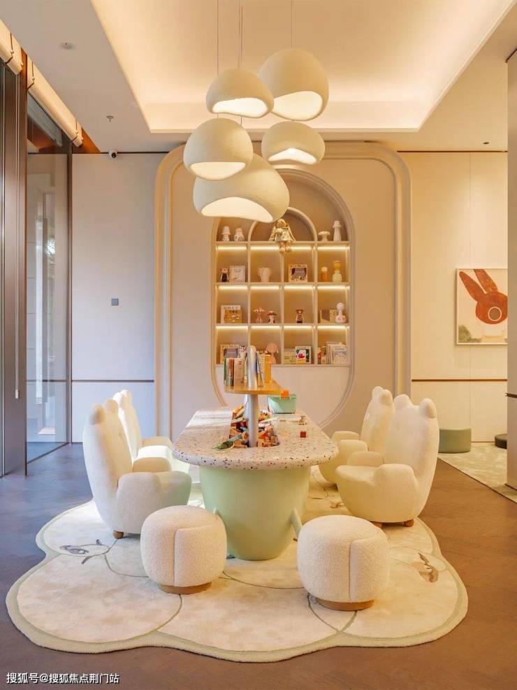 除了得房率出众,项目也有不少地方可圈可点。打造了宽约43.8米大门,四面铝板+大面积玻璃的公建化立面,高窗墙比,看起来很养眼。公区还设计了下沉式庭院、恒温泳池,高层全区覆盖了风雨连廊。