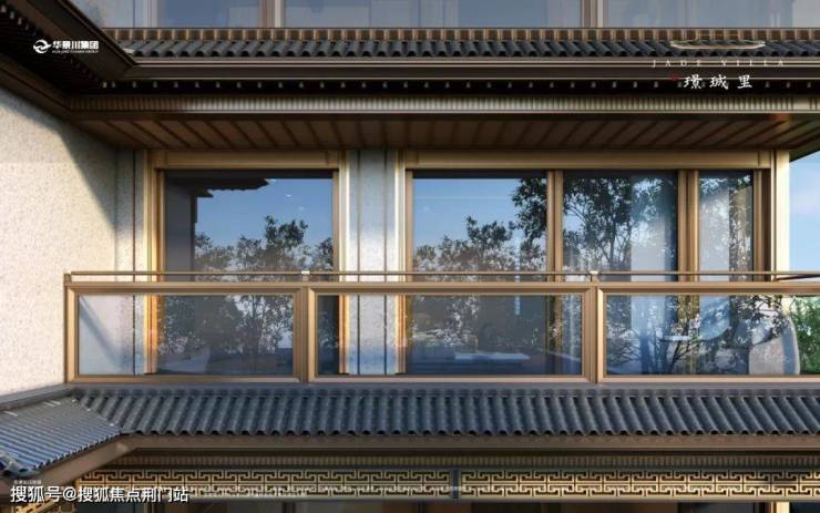 唐代以直棂窗为代表,人们对采光要求提升,窗户面积也相应增大。璟珹里用现代材质和工艺对唐风建筑进行转化,采用木色金属窗框与大面夹绢玻璃、铝合金垂花柱,打造“钩窗栏槛”效果,提升美观度与采光性。