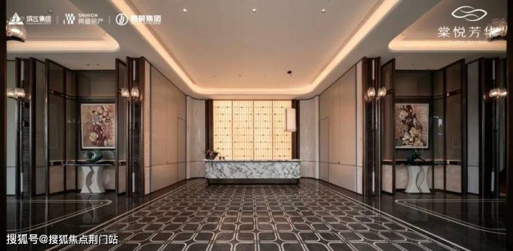 归家大堂是门面所在,也是当下开发商比拼重点。棠悦芳华的大堂,通过精细拉槽的石材与仿铜不锈钢的艺术搭建,同时采用世界名表伯爵旗舰店同款 “宝石蓝釉陶板”,现代感与仪式感并举。