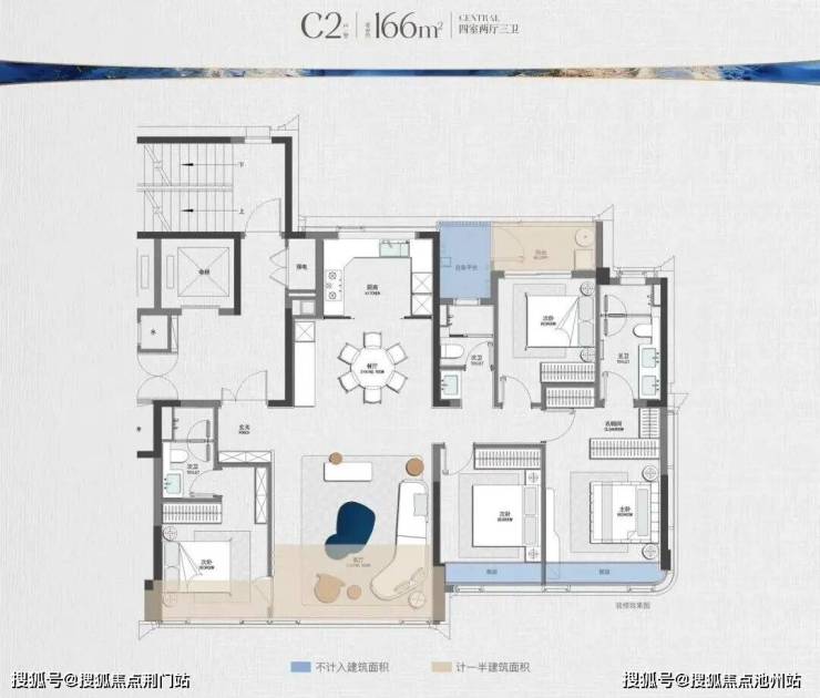 建发招商元序规划户型面积约139-156-166-178-188-233㎡,其中,233㎡户型图如下所示,含赠送得房率约89%。