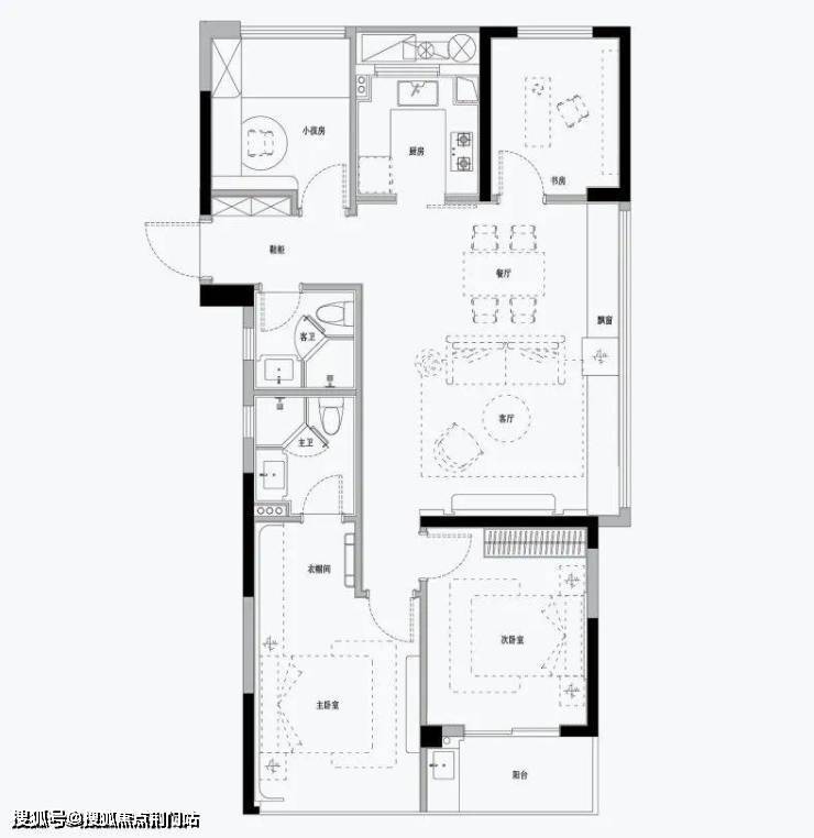 (建面约) 97㎡的全明边套三房,是一个很少出现在边套的面积段,南向双联阳台宽约6.4米,堪称刚需户型中的超尺呈现了。
