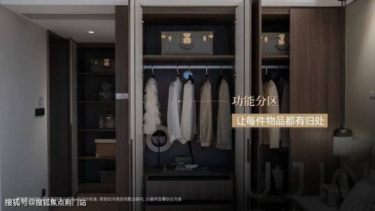 主卧衣柜作为置业附赠家装包中(家装包具体详询置业顾问),主人使用频率较高的空间,便捷是第一要义。璀璨映澜基于生活习惯的研磨,精心设计了旅行箱、抽屉、首饰展示等功能区,于无形中创造美好的生活体验。