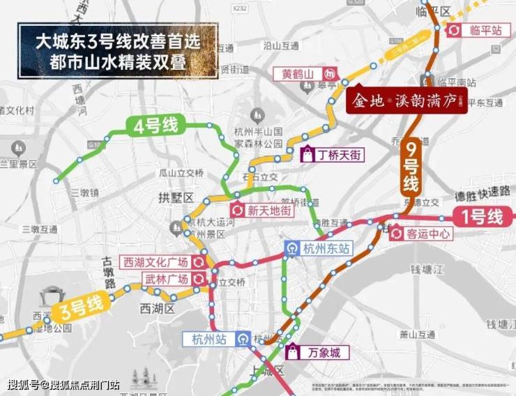 地铁出行有换乘之王3号线,直线距离项目约500米,3站即天街,且在这条地铁线路上,还有7站换乘点,直达全杭市心,如武林广场、钱江新城等。