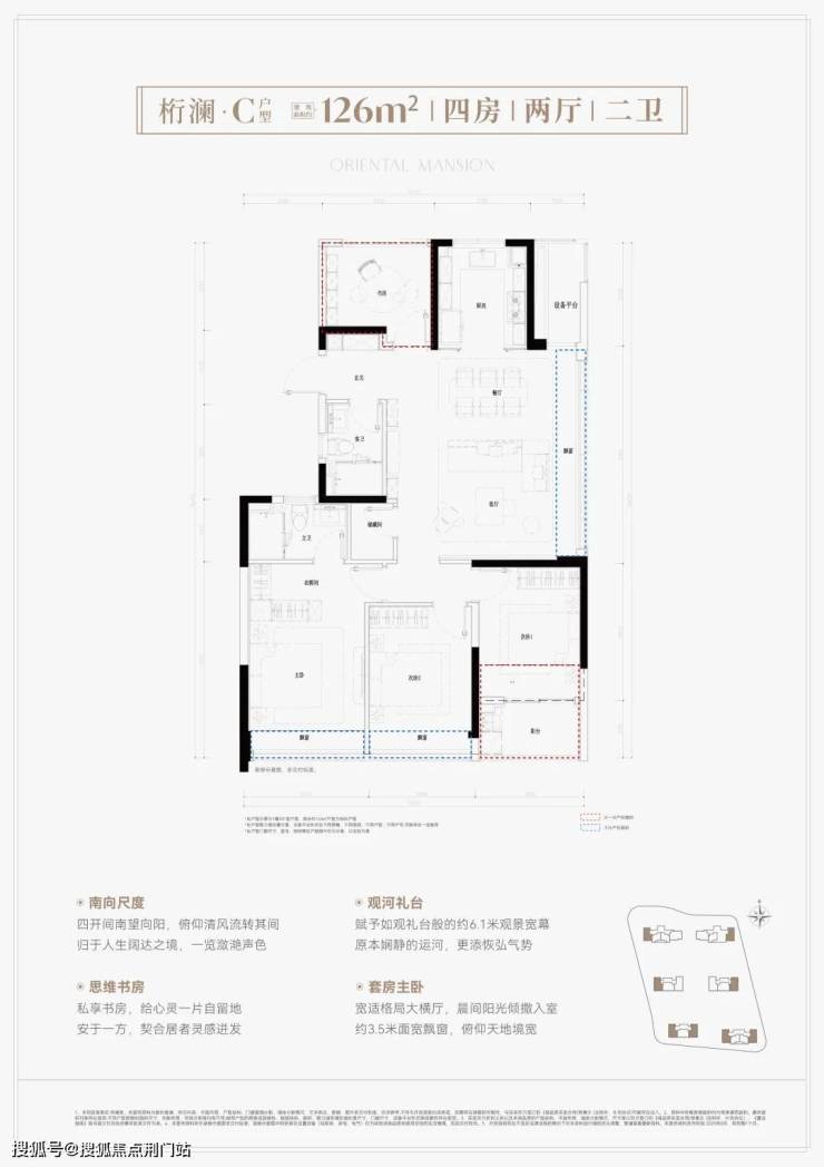 建面约126方4房2卫,270°稀缺边套四房