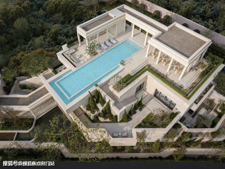 绿城·溪径恒庐是容积率1.01的低密项目,新一代的低密项目,都会更注重更高浓度的公共空间。绿城·溪径恒庐的会所空间有将近1.2万平米,除了地下会所空间,还在街角设计了一整幢现代版的「雅典卫城」三层会所。