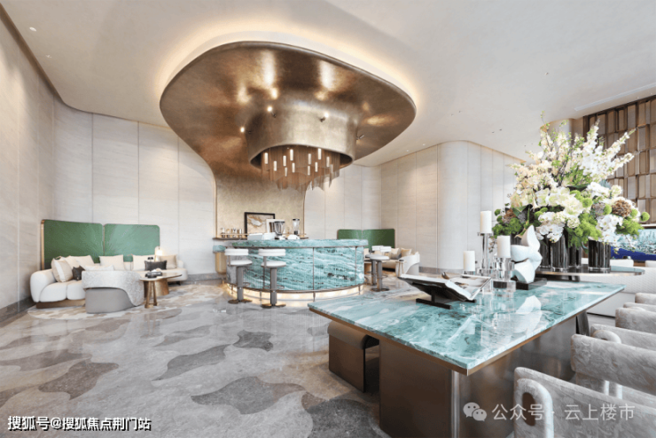 项目精心打造约1000㎡泛会所与约2000㎡主题开放式架空层,集健身区、阅读吧、潮流娱乐、儿童乐园、棋艺竞技等九大功能于一体。泛会所内,白洞石铺陈与鸢尾花地面图案交织,将 “光明与希望” 的意境融入空间;架空层则复刻酒店式精奢美学,让业主在楼下即可享受休闲与社交乐趣。