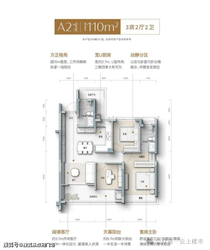 110㎡户型主打 “超 10 米采光 + LDK 大通厅”,空间感瞬间升级。餐客一体设计让聚会时的喧嚣与杯盘狼藉都能轻松容纳,厨房收纳系统更是 “家宴神器”,锅具餐具能实现 “秒归位”。约 3.7 米开间客厅与 6.7 米双联大阳台连通,一半用于晾晒生活,一半可打造成孩子的 “秘密基地”,实现 “生活与诗意” 的分区。