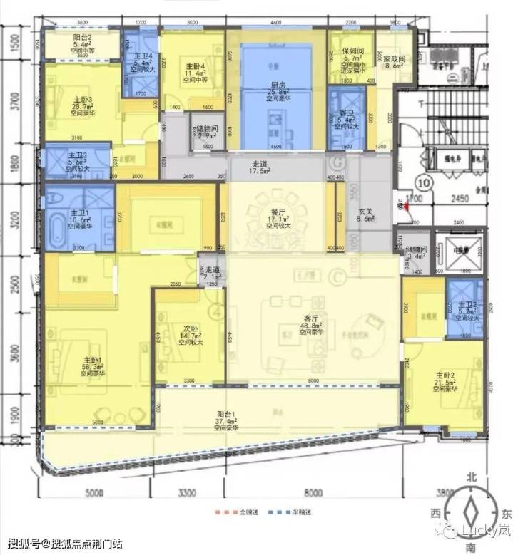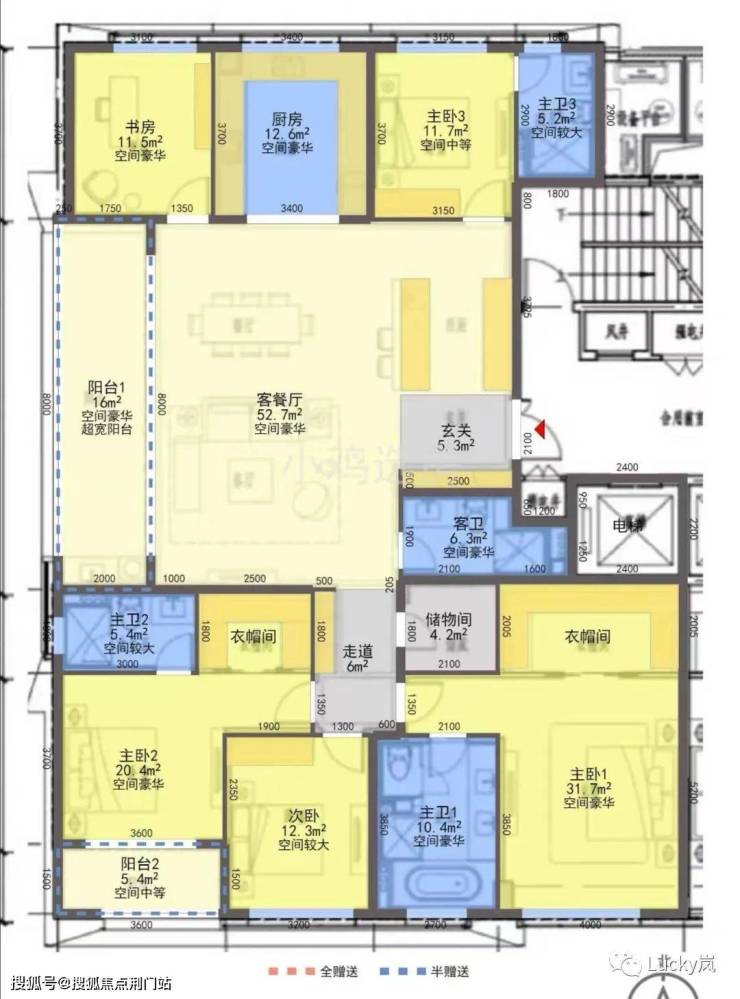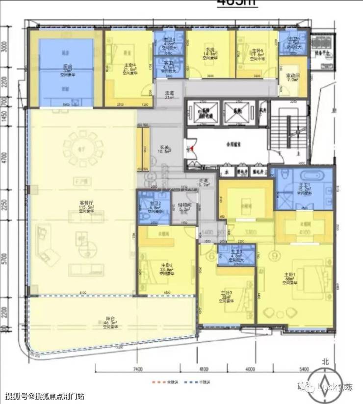 【户型面积】:179/198/248/360/465㎡,2梯2户(465方为2梯1户)