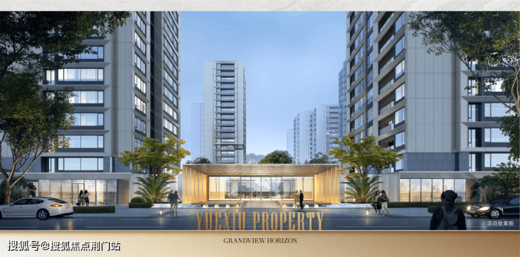 【公建立面】:铝板(香槟色)+大面积玻璃