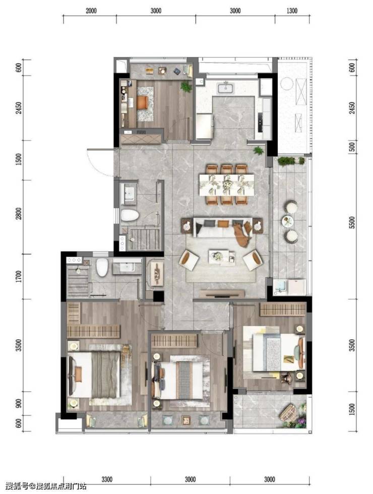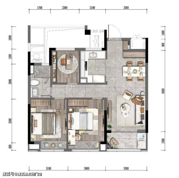 同时,该户型还拥有 双阳台设计,景观阳台和家政阳台功能可以分离。