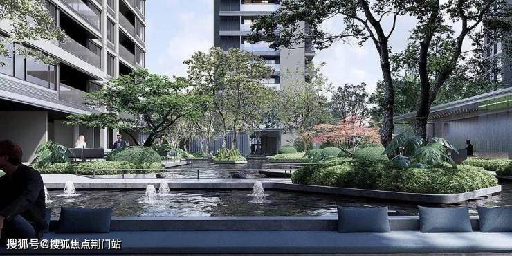 除了最能体现小区颜值的外立面,潮映望月府在景观设计上,同样独具巧思,由宋淑华大师所在的 GTS蓝颂设计操刀。