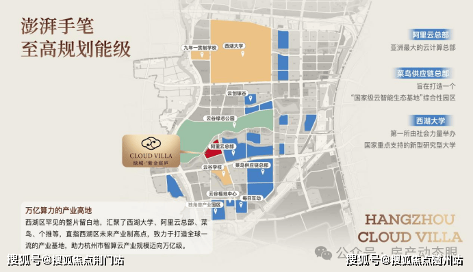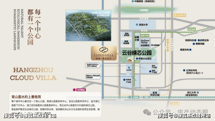 项目坐落于主城西湖区云谷站TOD核心区,与阿里云全球总部一街之隔,毗邻西湖大学与浙大紫金港校区。