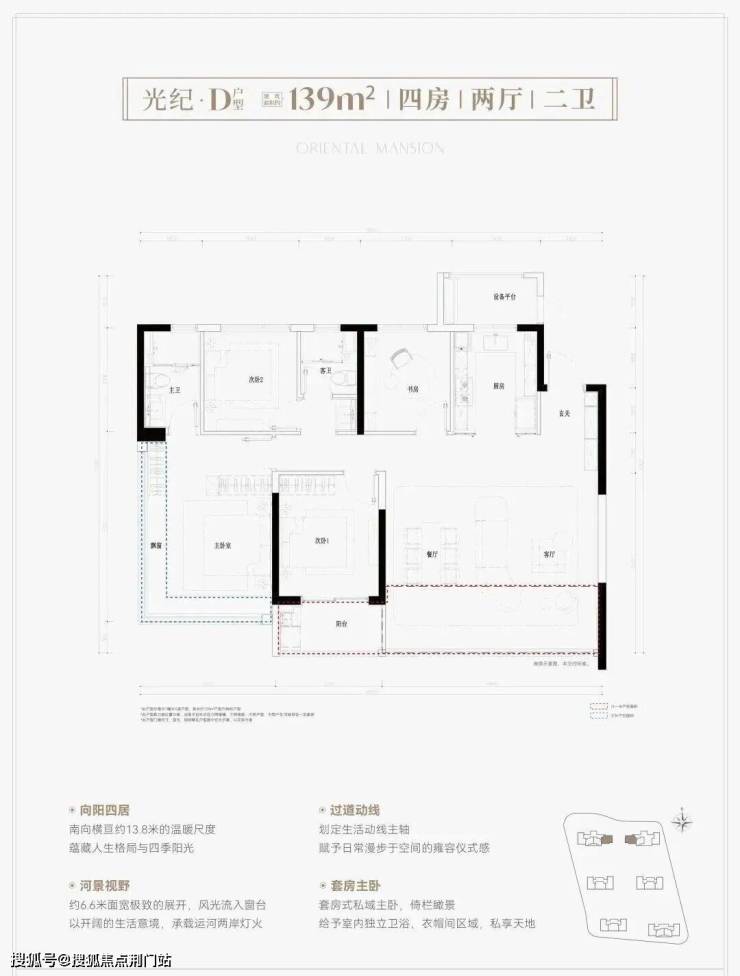 鸣澜里139平户型同样做的不错,打造四房两厅两卫,分为横竖两款,全部为边套,两梯两户设计。 其中,139平竖厅户型亮点分析:① 户型得房率超高达到约93%; 南向3个卧室,采光优且满足二胎家庭和三代同堂居住需求;③ 客厅面积达到约37平,足够大,同时额外配置 约2.6平的储物间