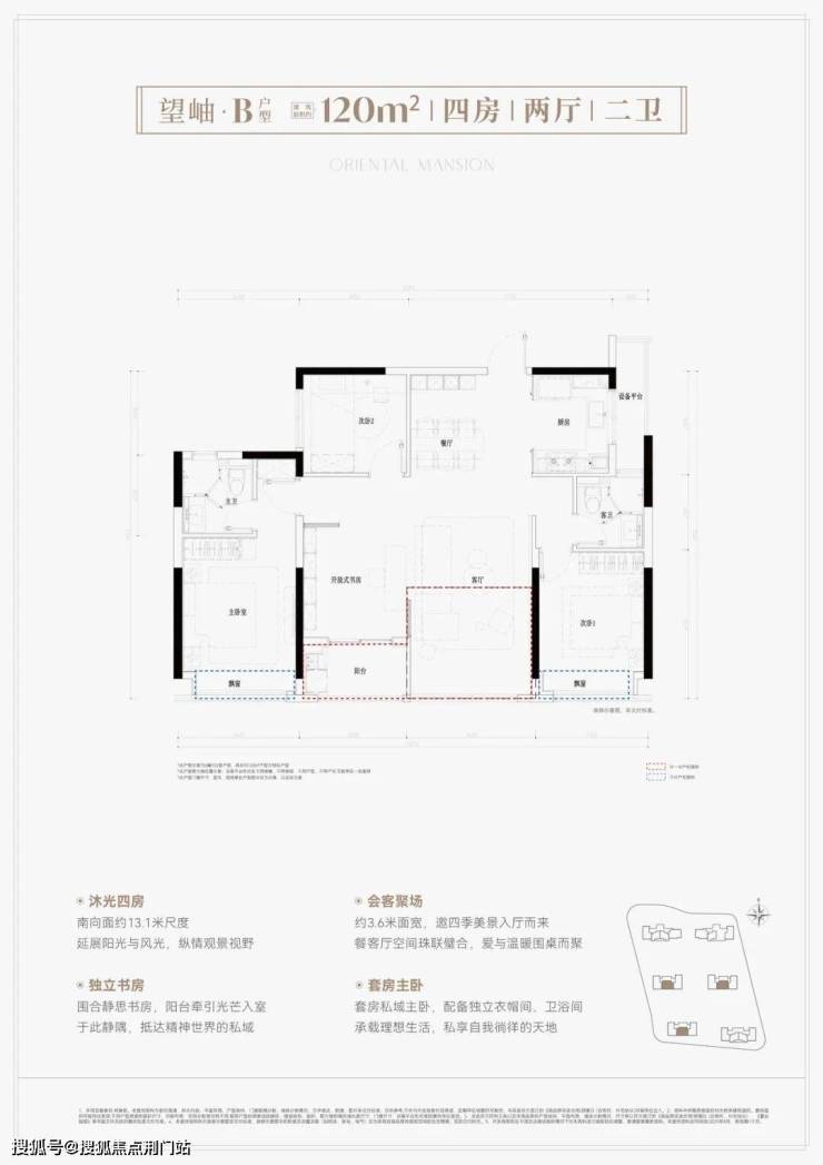 建面约120方户型:这款户型设计非常不错,在这个120方的面积段里不仅做了四房设计,而且还是四开间朝南,南向采光非常好。