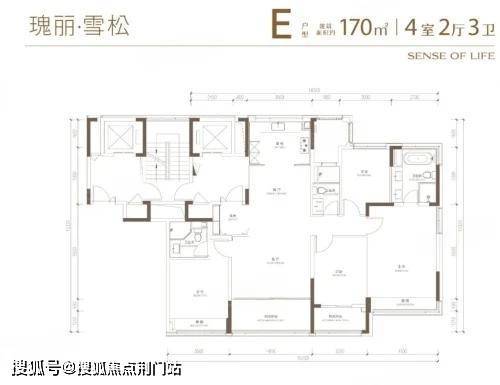 170㎡ 4室2厅3卫 “四叶草”格局,卧室分布四角互不干扰