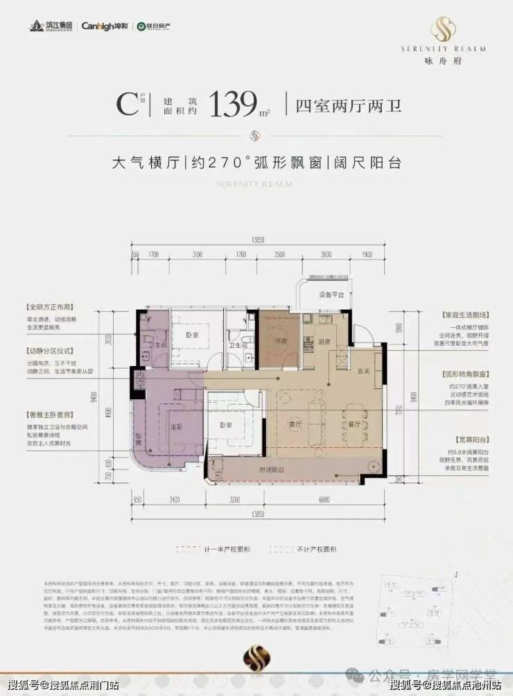 项目打造建面约123-173㎡的主力户型。该项目在户型打造上也有诸多突破,如建筑面积约139㎡户型采用约6.8米全景横厅,采光极佳;约21㎡主卧带步入式衣帽间,搭配270°转角飘窗,更奢华明亮;双洄游动线体系既保证隐私又创造多元互动场景。