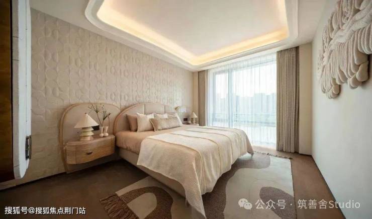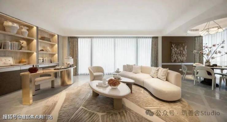 私宴,以撞色绿色石材打造的景墙巧妙划分出休憩与用餐区域,既巧妙掩盖了空间中的柱子,又破解了宽阔空间的单调感。拱券天花与墙面波浪板的和谐呼应,既彰显了空间布局的层次感,又打破了传统对称的僵化。淡雅的硬装色调搭配深邃的中古家具与软装,简约而不失格调,视觉体验清新自然,避免了过度夸张。