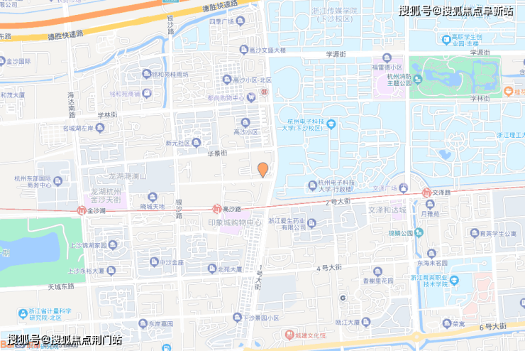 周边直线3km范围内有4个地铁站(高沙路、文泽路、金沙湖、下沙西),轨道交通发达,距离最近的地铁站是高沙路。