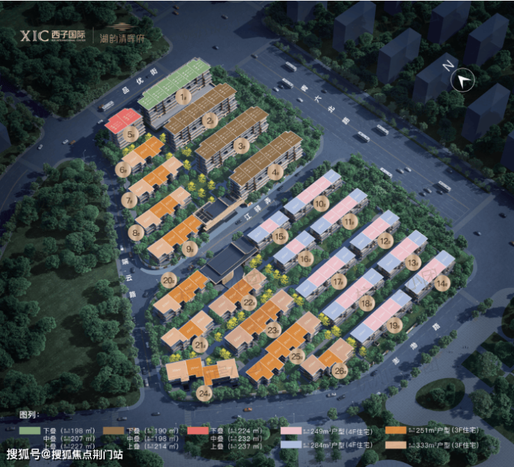 首先,在规划格局上,项目以“南低北高、西低东高”的扇形展开,全力向东沙湖敞开怀抱。