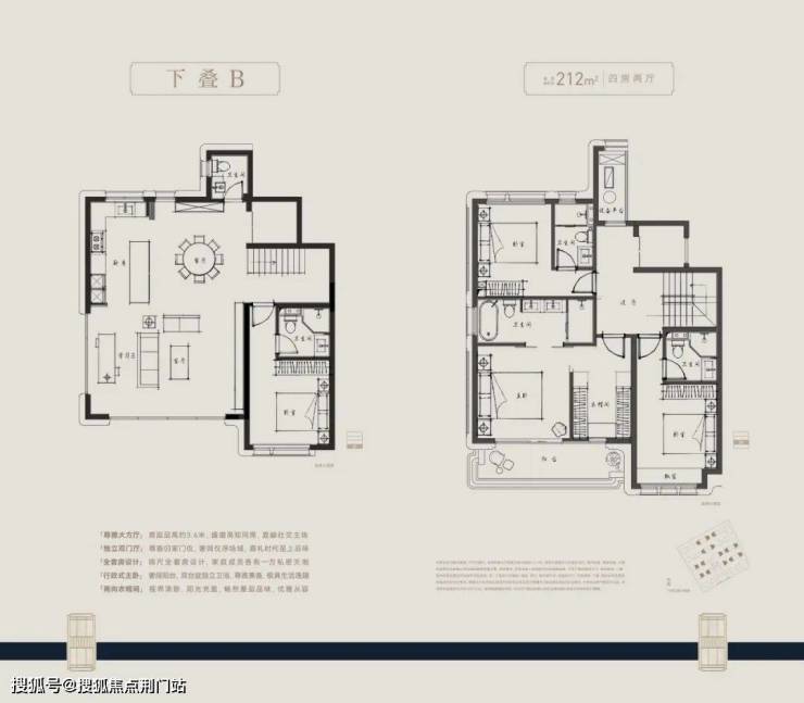它的主力户型建面约210-280㎡,下叠和上叠首层各有南北独立入户,地下也各有南北入户门厅+独立车位。上下叠基本都做到了“无交集归家动线”,你可能都感觉不到邻居的存在。
